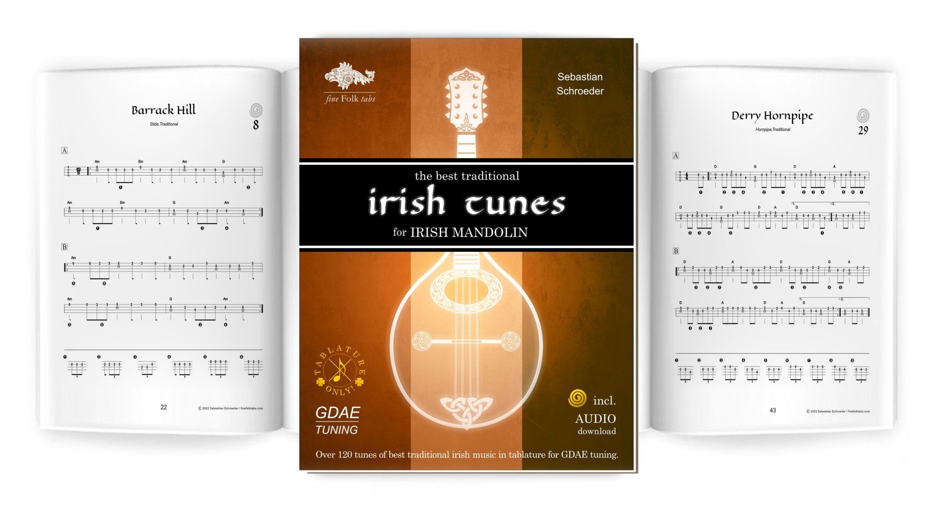 This book should not be missing at any session! 120 traditional Irish tunes, exclusively arranged in tablature for mandolin in GDAE tuning - with chords, triplet ornaments and audio samples as audio download. With tablatures for the following pieces: